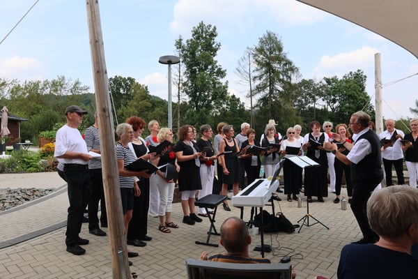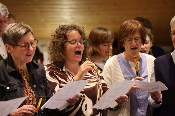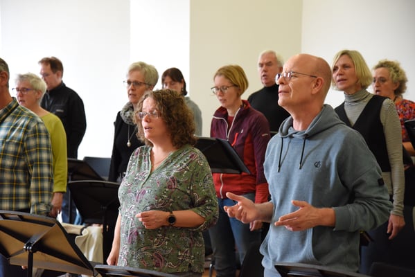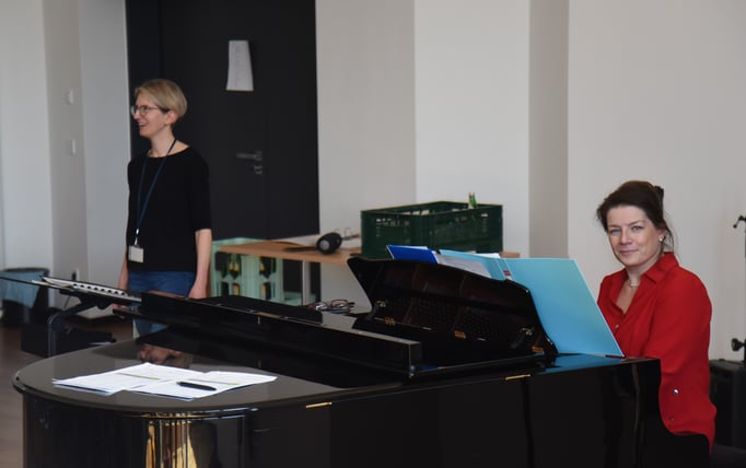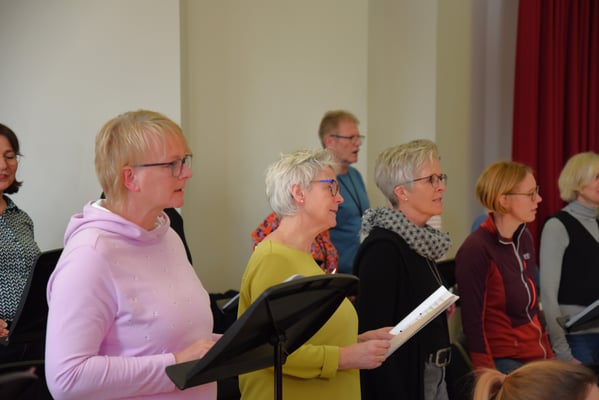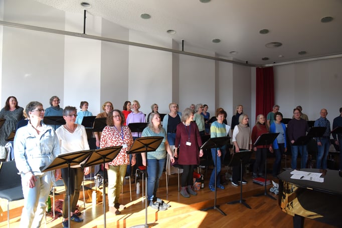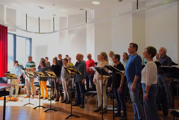 Gymnastik mit Claudia, Kathrin dirigiert und spielt Klavier, Warm-Up mit Sabine, Proben, Proben, Proben und natürlich eine kleine Videoproduktion für Social-Media als Werbung für unser "Lieblingslieder"-Konzert.